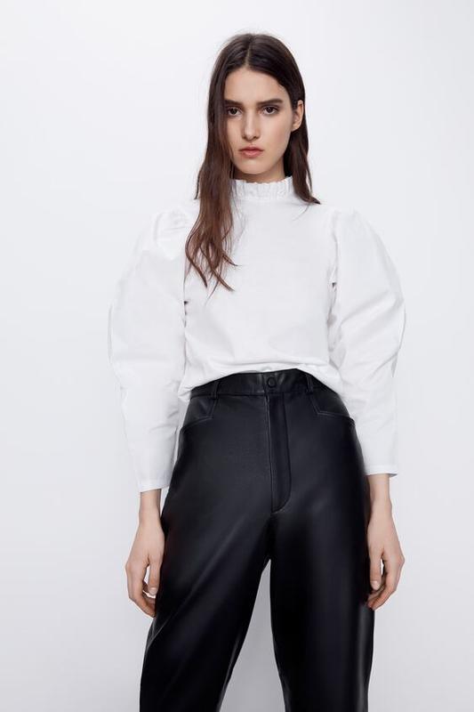Котоновая укороченная блузка.Рекомендованыый размер S, будет свободно на XS. Интересный рукав.