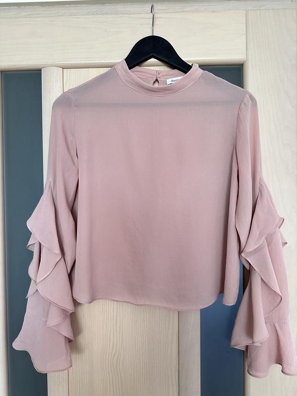 Розовая блузка с рукавами волан