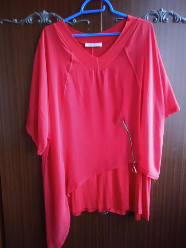 нарядная блуза красного цвета,пог-68 см.длина-80-103 см.