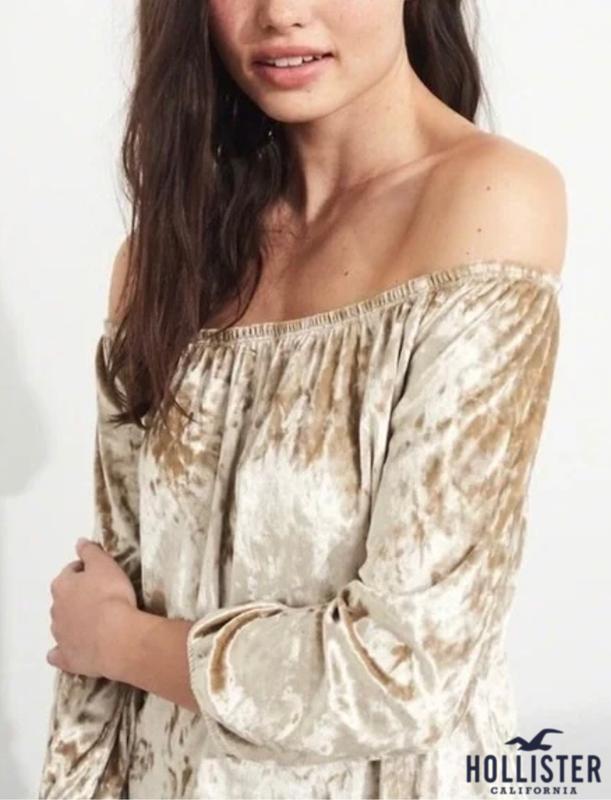 Бархатная блуза топ с открытыми плечами золотая hollister