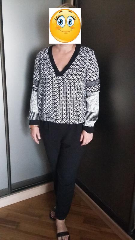 Черно - белая блуза НМ Размер указан 10, но скорее подойдет на 12 Замеры Плечи - 40 см ПОГ - 54см ПОБ - 58 см см Длина - 55 см Длина рукава - 58 см