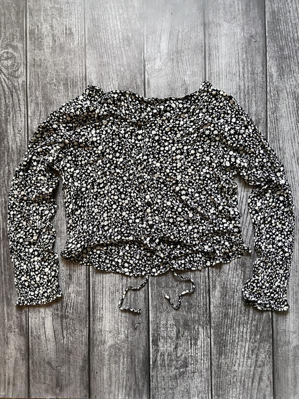 Женская блуза h&m В мелкую каоточку На пуговицах и стягивается резинка и завязки Размер s /m Плечи 40 Рукав 57 Длина 47,48 см