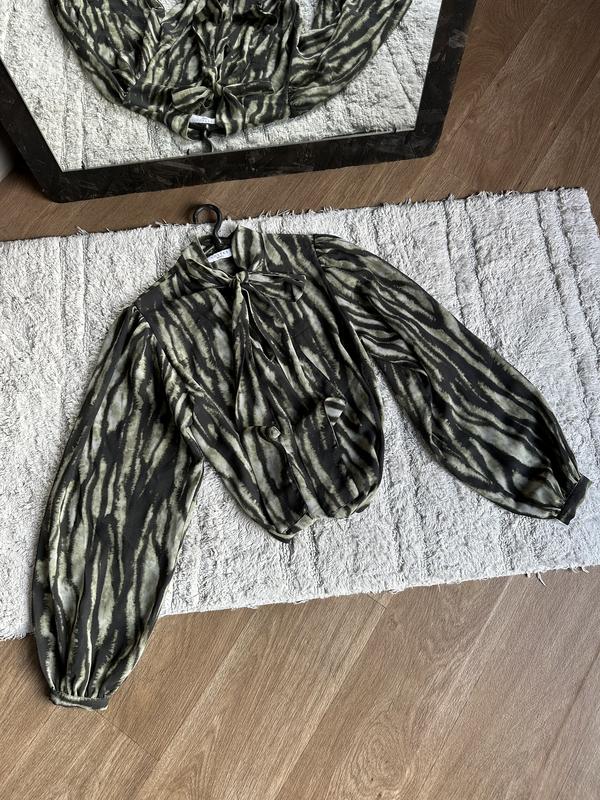 Блуза легкая свободная с объемными рукавами завязывается на шее умеренно просвечивается замеры на фото