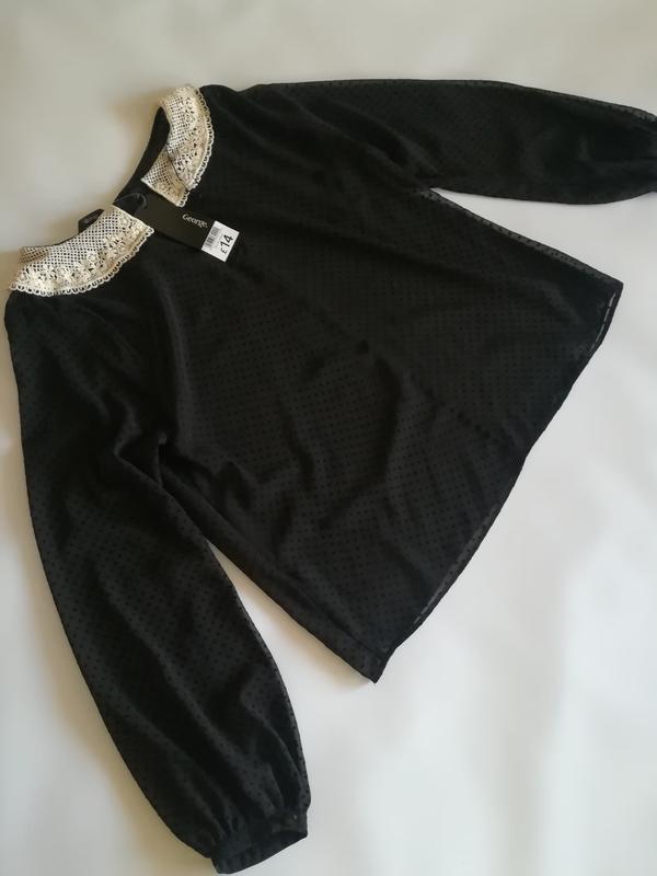 Блуза из прозрачного шифона, состояние идеальное без дефектов, новая. Размер указан 14,но фактически идёт на 12 Длинна ~58 Пог ~54 По низа ~57 Рукав ~62