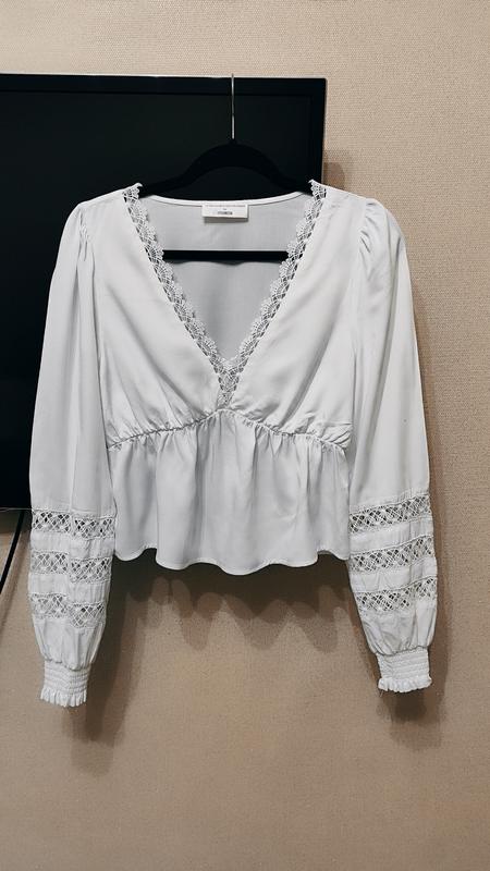 Шикарная блуза из натуральной ткани.Гарный манжет,прошва.Пог-47,талия на резинке-37,длина-49