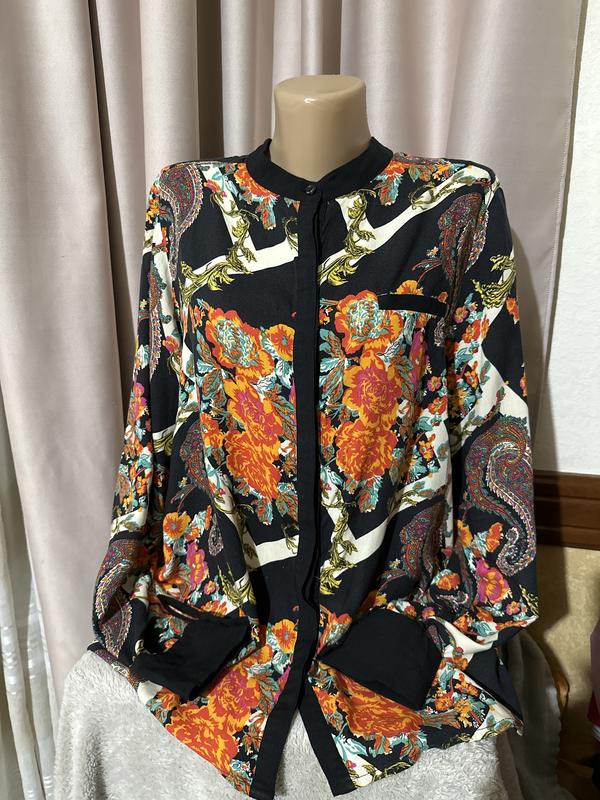 Блуза из вискозы, очень приятная на ощупь. По плечам -43 см, рукав -66 см, пог - 66 см, Пот -62 см, довжина -68 см