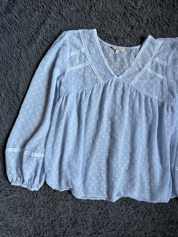 Женская блуза небесного цвета, размер S-M идет свободного кроя, есть нюанс на рукаве, при носке едва заметный, фото прикрюплю.