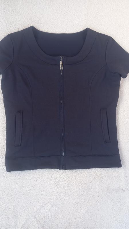 состояние очень красивое, цвет темно синий, не выгорает, полу обхват груди 50см, длина 57см бирок со составом ткани нет.