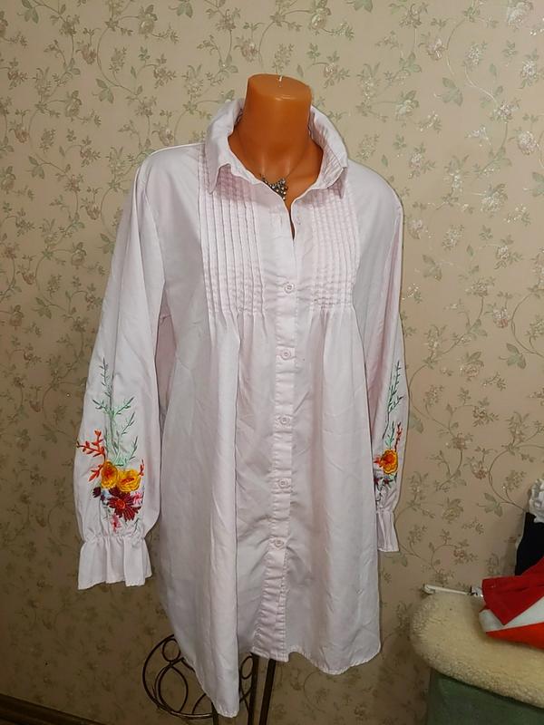 Гарная блуза с вышивкой на рукаве.Бледо розовая.