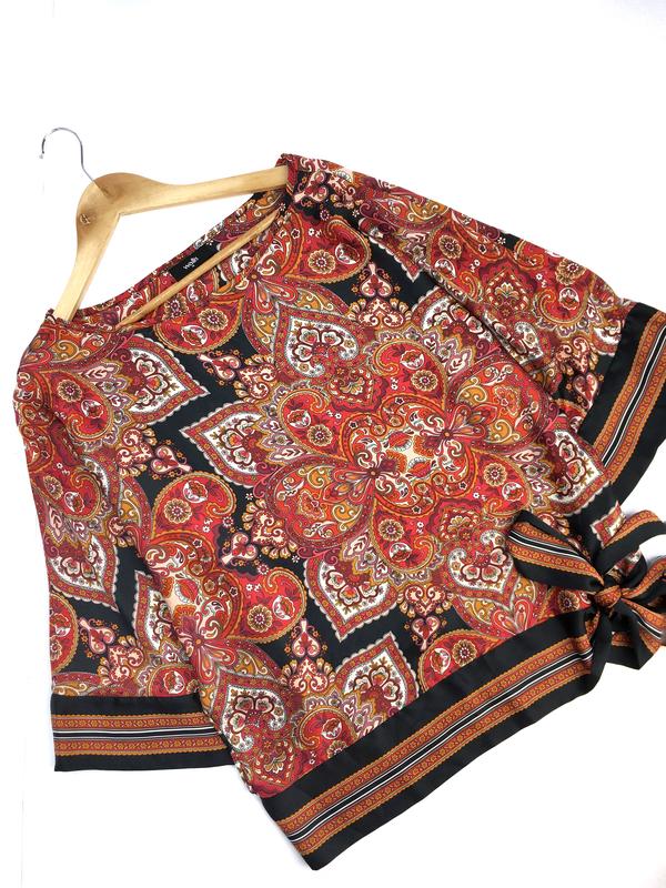 Жіноча блуза від Wallis Розмір М, але краще дивіться заміри Стан нової Знизу збоку зав'язується Заміри : Довжина 67 см Груди вільно до 60 см Рукав 51 см Склад тканини 100 % polyester Для детальної інформації та замовлення пишіть в повідомлення Дивіться мої інші оголошення