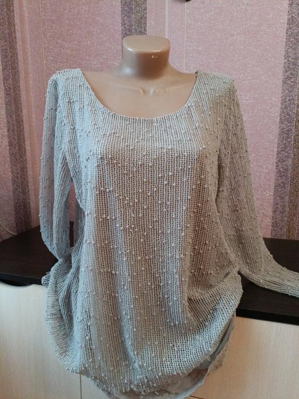 Нежная, верхний слой - ткань в сеточку, нежный - х/б с кружевом. Замеры, ПОГ - 50, поб - 56, длина рукава от горловины - 65, длина сеточки -63, длина с кружевом - 71.Очень хорошая. Состояние новой.