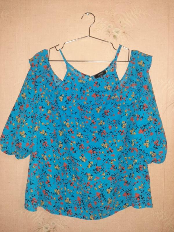 Очень крассовещая вещь, состояние новой, красиво садится, размер UK18: ПОГ - 57, ПОТ - 70 по низу, рукав на резинке, длинна - 65, плечи обнажены