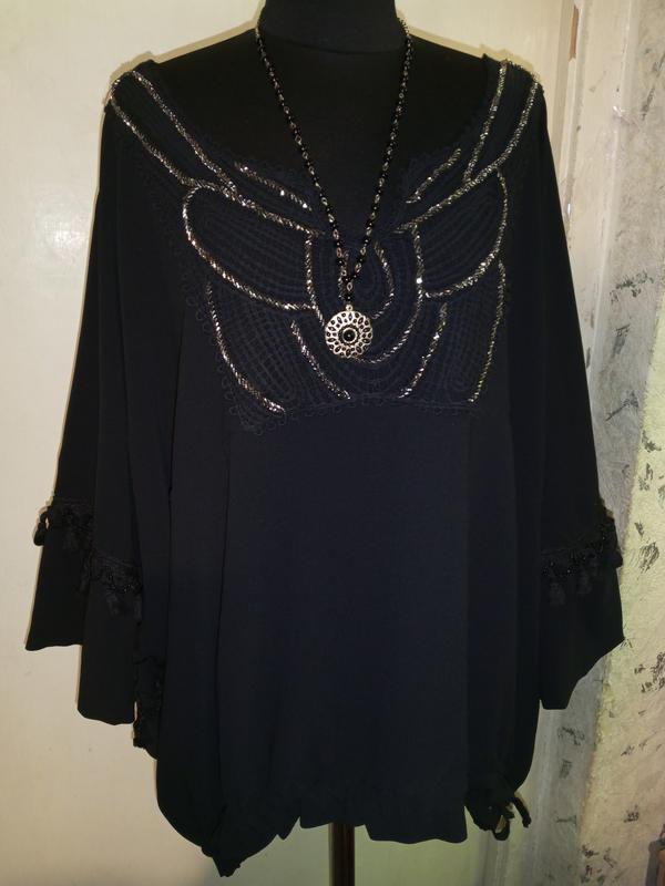 Шикарная,нарядная блузка с бисером,широким рукавом,бохо,мега батал-оверсайз,франция