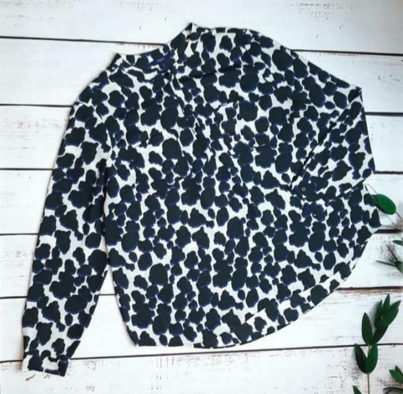 Стильная блуза в анималистический принт Next, размер 50 - 52 Отличное качество Есть 2 нагрудных кармана Седает свободно Замеры: полуобхват груди - свободно, по факту 60-61 см полу охват талии - свободно, по факту 64-65 см ширина внизу - 67-68 см плечи - 44 см длина вещи - 67,5 см спереди, 75 см сзади длина рукава - 61 см На бирке указан 16 размер - хорошо подойдет на наш 50 - 52 размеры (см. замеры) Состав - 100% полиэстер