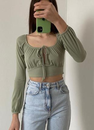 Топ в рубчик, с длинным рукавом, на завязках.