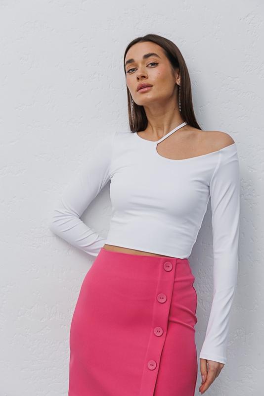 Короткий топ з вирізом на плечі 40-48 р.🥨🍄🌴