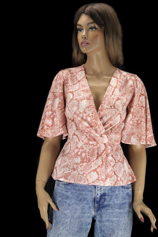 Стильная шелковистая пудровая блузка "Primark" с принтом рептилия. Размер uk 8 и uk 14. Без застежки, верх блузки на запах, пояс сзади на резинке. •*´¨`*•.¸¸.•*´¨`*•.¸¸.•*´¨`*•.¸¸.•*´¨`*• Размер uk8/eur36. Замеры: -ПОГ - 41 см; -ПОТ - 34 см (тянется до 40 см); -длина по спинке - 57 см; -длина рукава - 31 см. •*´¨`*•.¸¸.•*´¨`*•.¸¸.•*´¨`*•.¸¸.•*´¨`*• Размер uk14/eur42. Замеры: -ПОГ - 48 см; -ПОТ - 39 см (тянется до 47 см); -длина по спинке - 58 см; -длина рукава - 32 см. •*´¨`*•.¸¸.•*´¨`*•.¸¸.•*´¨`*•.¸¸.•*´¨`*• Без каких-либо дефектов. В идеальном состоянии. Параметры манекена, на котором сделано фото блузки в размере uk8/eur36: -рост - 185 см; -обхват груди - 87 см; -обхват талии - 64 см; -обхват бедер - 92 см.