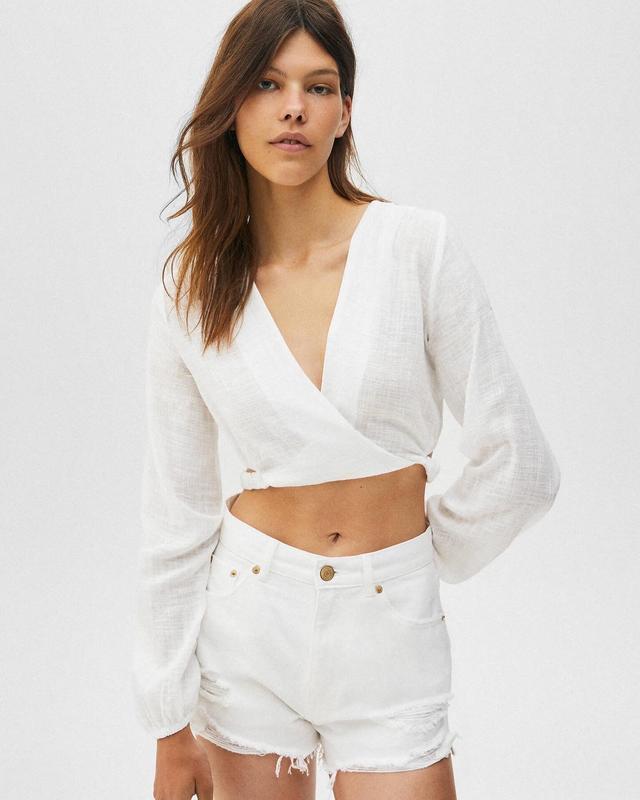 Укорочена блуза Pull&Bear Размер XS Новая с биркой! Цвет - белый Материал: вискоза/ хлопок 🏷️Цена 580грн