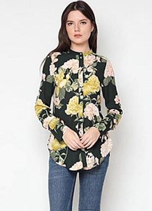 Очень красивая,легенькая фирменная блузочка,интересные рукава,воротничек стоечка,подойдет как для прогулки вечером,так и в офис.Длинна-76см,ПОГ-49см.Состояние идеальное,дефектов нет!