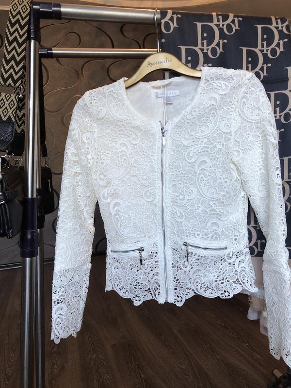 Неимоверно красивая блуза ,пиджачок ,с потрясающей ажурной ткани ! Смотрится шикарно ,и дорого ,На меня в притык ,так и не одела (