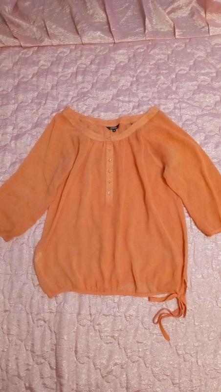 На блузе присутствуют маленькие точки и небольшие затяжки, шестняя фото.Блуза просвечивается.