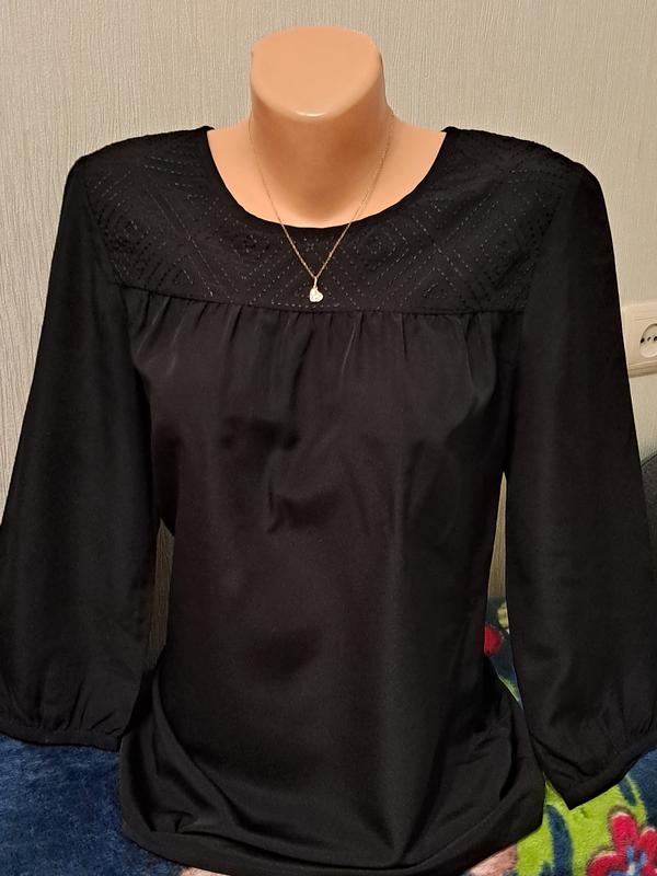 блуза новая, без дефектов насыщенного черного цвета не тянется размер S замеры: ОГ 44см длина 67 рукав немножко больше 3/4 =47см плечи 37см