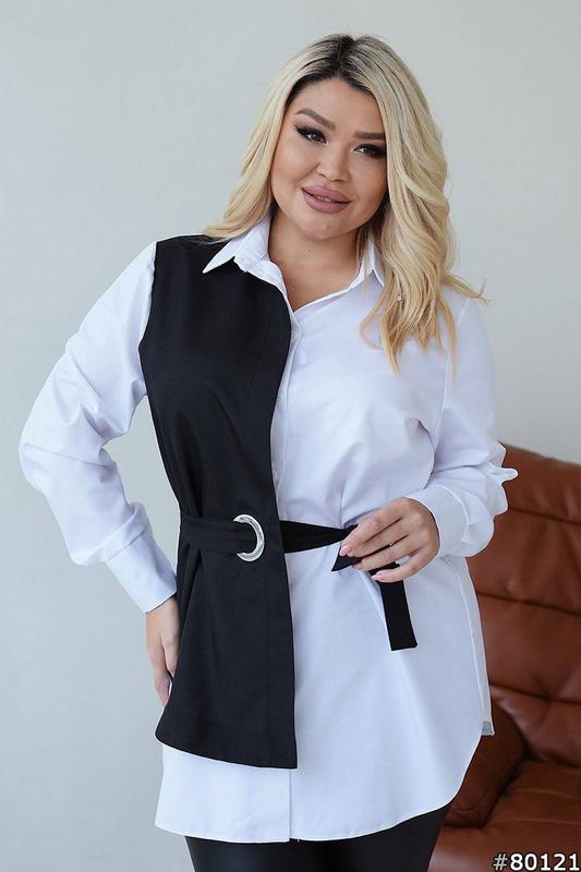 Блуза 🔥Очень интересный дизайн!! Не оставит никого без внимания 🥰 Качество ткани супер!!Очень приятная к телу! Застежка-пуговицы. Пояс идет в комплекте. Мод. 236 Размеры: 48-52, 54-58 Тканина : вискоза-коттон 100% +костюмка ( тканина не тягнеться) инс 885.00 грн