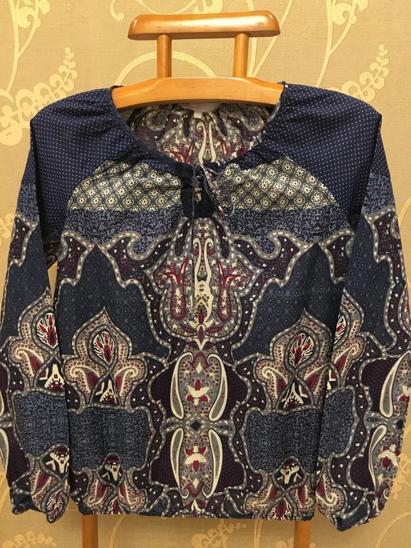Предлагаю вашему вниманию брендовую очень красивую и стильную рубашечку синего цвета в разноцветных узорах. Фирма REDHERRING от Debenhams. Размер указан 10. Бирочка с составом отсутствует...ткань похожа на лёгкий котон. Новая. ПОГ-50, длина-65, длина рукава от ворота-70. ВНИМАНИЕ!!! При покупке три и более моих вещей-бесплатная доставка посылки Новой почтой. Удачных покупок.