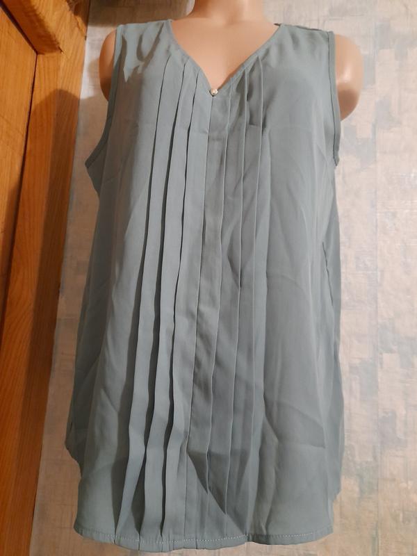 Блуза літня р. 50 англ р 16 євр р 44 колір синє-салатовий (відтінок морська хвиля) по переду прикрашено гудзичками та складочками довжина - 65 см пог - 54 см ширина по низу - 58 см