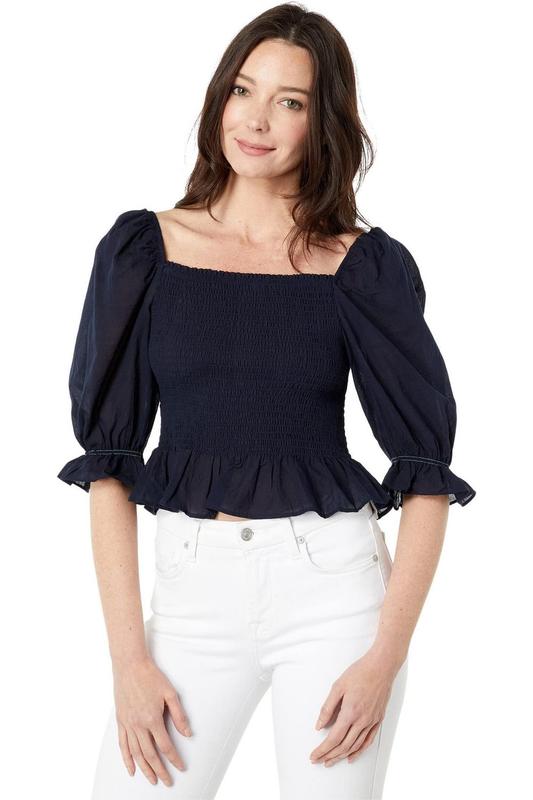 Женская блуза Tommy Hilfiger. Удобная легкая укороченная блузка из приятной ткани. Широкий рукав-волан с манжетами на резинке. Рюши на рукавах и подоле придают блузе стиля и изюминки. Сверху ткань присборена для более удобной посадки. Идеальный выбор на лето к любому вашему образу. Отличное качество. Машинная стирка. Производитель: Tommy Hilfiger Страна: Индонезия Цвет: Синий Состав: 100% хлопок Сезон: Лето Вид товара: Блузка Стиль: Городской Фасон выреза горловины: Квадратный Размеры: L В Киеве самовывоз и примерка возможна в рабочие дни с 9.30 до 18.00 . Шоурума нет, заранее сообщайте какие товары подготовить. Отправки Укрпочта, Новая почта. Отправляем наложенным платежом.