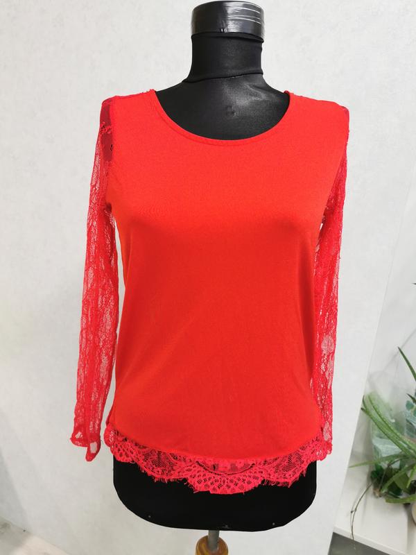 Красивая женская блуза с кружевными рукавами и украшена кружевом. плечи 34 см. пог 44 см....