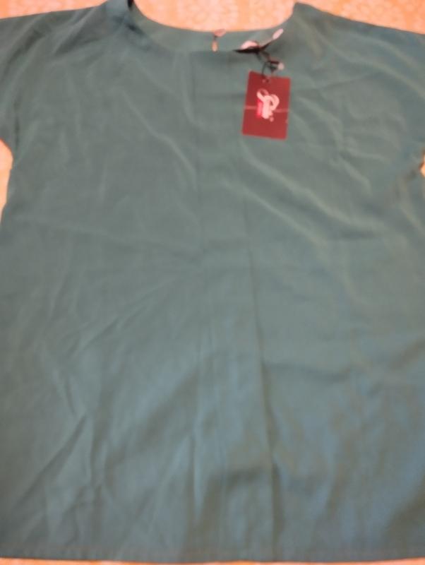 блузка темно зеленого цвета, как на 4 фото, спереди с планочкой, сзади на горловине застежка на пуговицу, новая.