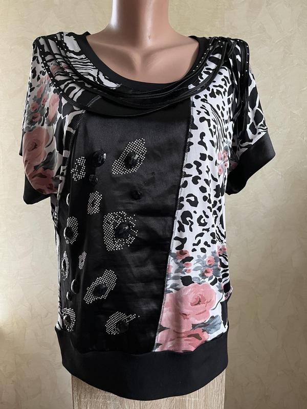 Блуза нарядная. Украшена камнями, эластичная. Производитель Турция. Замеры: ОГ-56; ОБ-52.Рукав реглан. Длина-60
