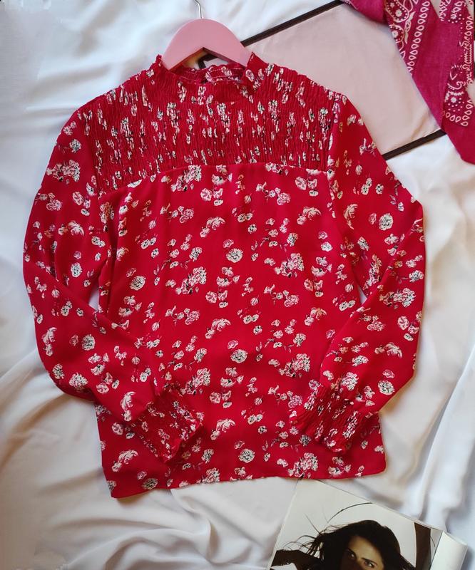 Красная блуза с цветочным узором до длинного рукава блузка красная.