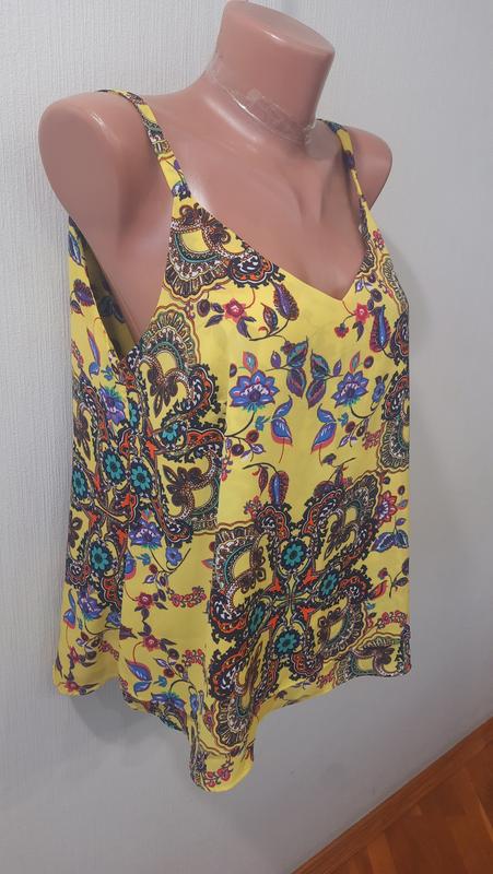 В идеальном состоянии яркая блуза на девушку 48р. Длина от плеча до низа 64см, ширина под подмышками 48см.