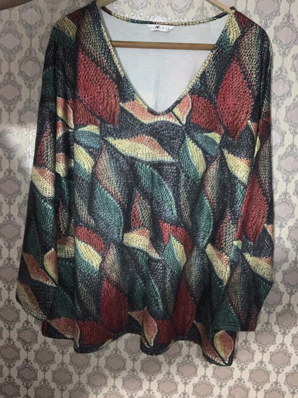 Блуза Большой размер ПОГ 66 ПОТ 69 ПОБ 74 Рукав 47 Плечи 70 Рисунок под вязку
