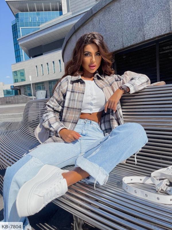 Рубашка KB-7804 мод 013 Размеры: 42-48 Рубашка оверзайз в клетку с баской Ткань: качественный турецкий кашемир (люкс качество) Цвета: бежевый