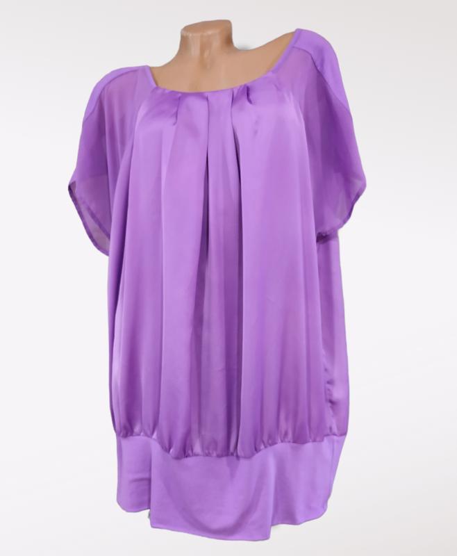 Очень красивая и приятная к телу блузка. Искусственный шелк, совмещенный с вискозным трикотажем. ПОГ-62+ объем от складок Полуобхват по низу-54-69 Длина-73