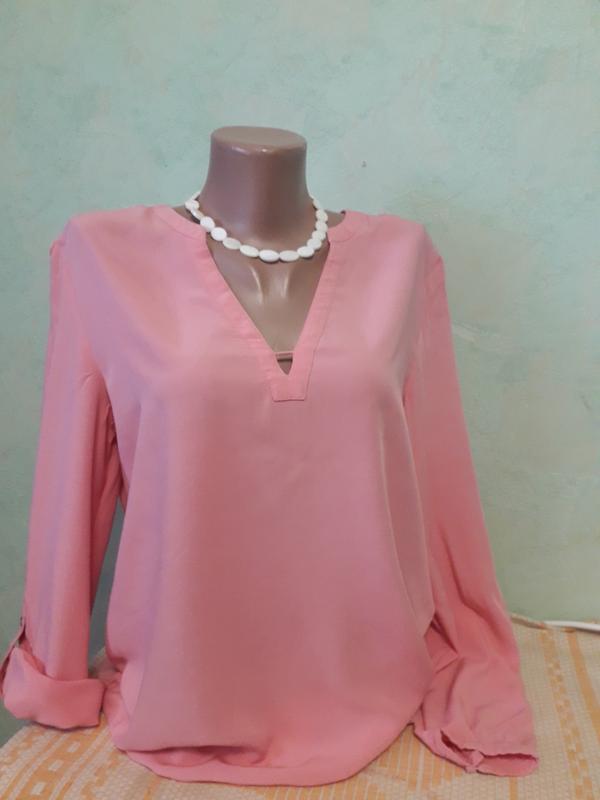 легка блуза сорочка в ідеальному стані, без дефектів, довжина по спинці 68 см, пог 50 см, ширина плечей 41 см, довжина рукава від плеча 62 см. по низу гумка. склад віскоза виробництво Індонезія розмір вказаний UK 12