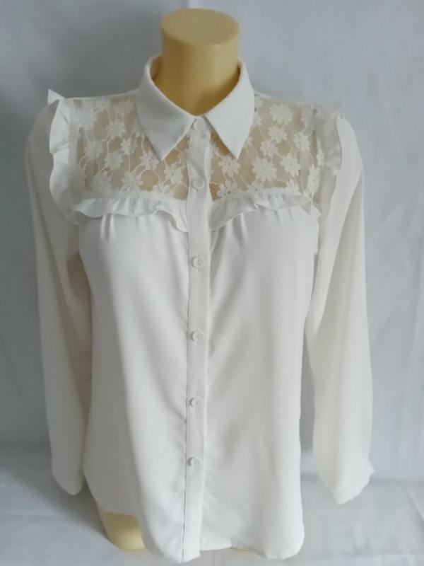 Блуза с кружной вставкой. р.L, плечи 38,грудь 52, рукав 61, длина по спинке 66, по переду 64.