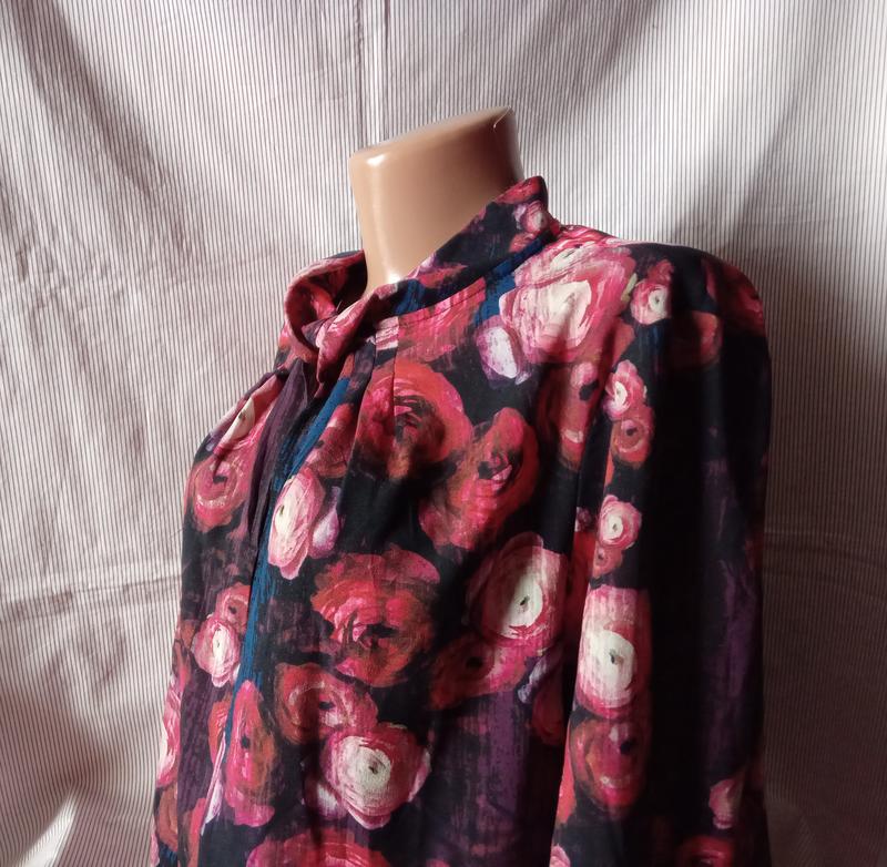 Стильна,ошатна.З цікавим коміром та живописним трояндовим принтом. ФОТО НА ТІЛІ НЕМАЄ. Довжина 65 Завширш(пахви) 59 Річ нова,без паперової бірки -СТОК.