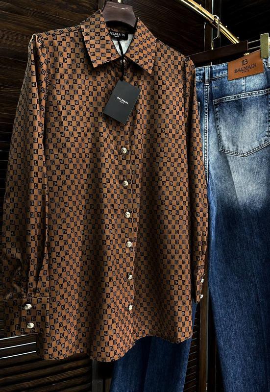 Коричневая блуза с фирменным орнаментом BALMAIN 🤩🤩🤩 • фирменные металлические пуговицы Lion 🦁 • все логотипы и бирки 🏷️ • свободный фасон В размерах: S M L XL