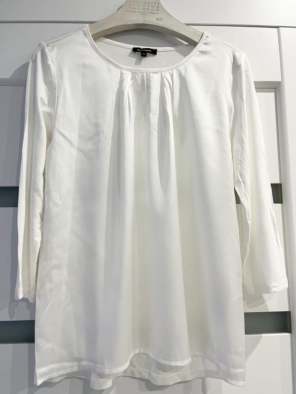 блуза белая, сзади трикотаж, спереди атлас.