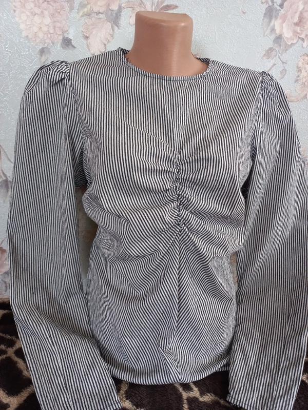 Трендова модель блузи. Рукава та спинка на блискавках, трішки тягнеться за рахунок єластану. Добре сяде на М. Заміри: довжина 61см, плечі 35, пог 46 , пот 38, рукав 62