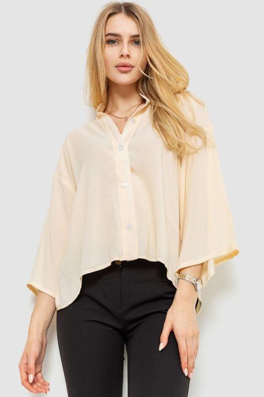 Блуза классическая однтонная, цвет светло-бежевый, 102r332-3