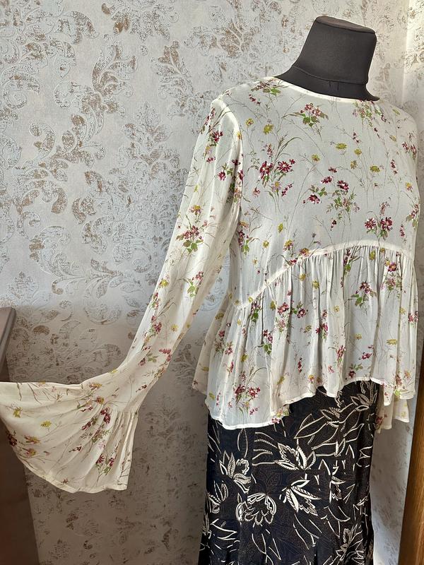 Ніжна, в квіточку , вершкового кольору 🍦блуза з ґудзиками по спині. Пог-47-48. Довжина 56