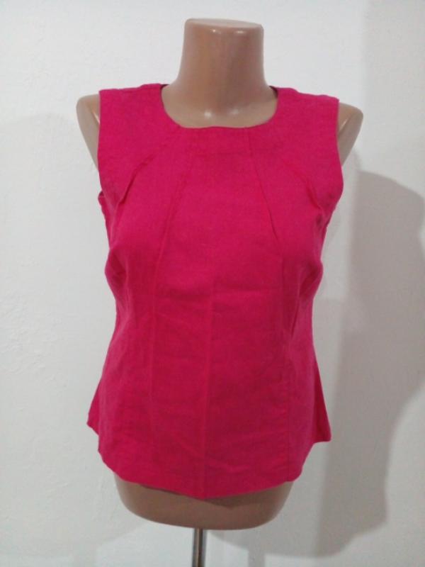 В ідеальному складі 55% льону , решта віскоза + еластан, одягається без замка , через голову, ґудзики натуральні з мушлі. Розмір вказано 12, Л. пог-50-51 пот-45 поб-50-52 довжина-58