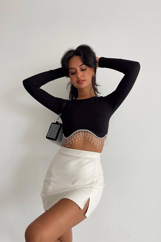 Укорочена кофта з камінням 😍 ▫️Модель: 036 ▫️Розміри: S,M,L,Xl ▫️Колір: чорний ▫️Виробництво; Туреччина🇹🇷