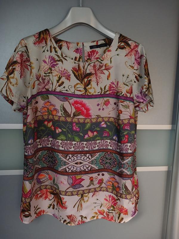Блуза красива та яскрава. р 12. marks&spencer в дуже гарному стані. Заміри: плечі 39, рукав довжина 16,ширина 16, пог 50, пот 48, по низу 52, довжина 63см.