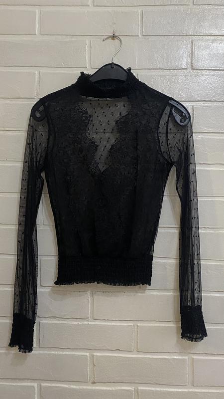 Женская блуза сеточка с кружевом. Смотрится очень стильно. Размер XS.